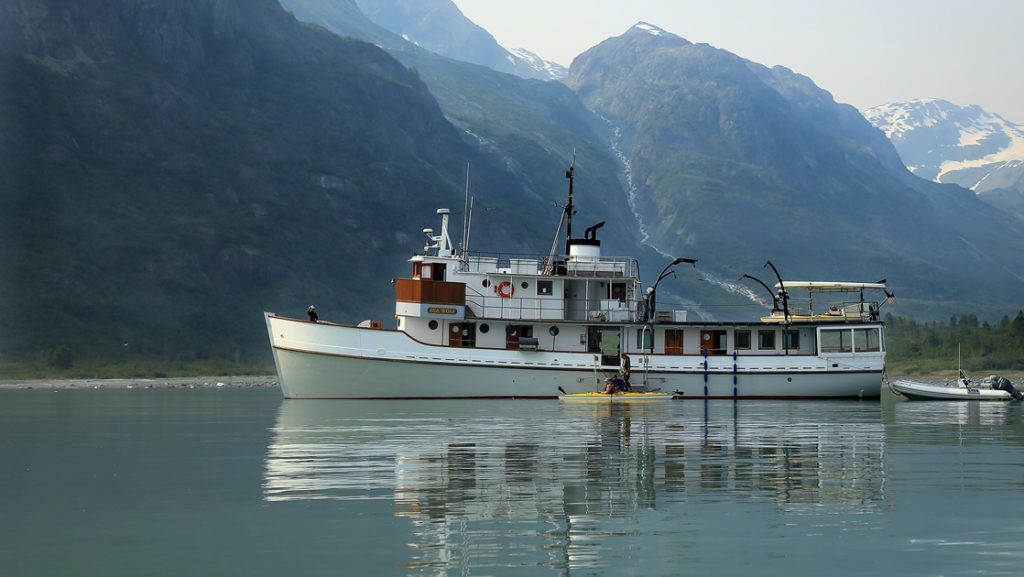 Passage is aboard the historic 12-passenger small ship M/V Sea Wolf, a historic wooden World War II minesweeper featuring beautiful lines, stability, maneuverability and special accessibility equipment… all qualities that make her an AdventureSmith favorite for private Alaska yacht charters. On a charter or a set departure with soon-to-be friends, venture to unique sites that big ships can’t reach and enjoy the knowledge of your local captain, a naturalist who owns and operates the vessel. The captain hosts local school children on a private departure annually and can help your own children see Alaska in a special way, making this trip a prime selection for our Alaska family cruises. Sea Wolf may set sail for the Tongass to capitalize on active fish populations, or Chichagof Island to view active bears. And the ship is most famous for its comprehensive Glacier Bay cruise routes, the vessel’s home base for most of the Alaska season.