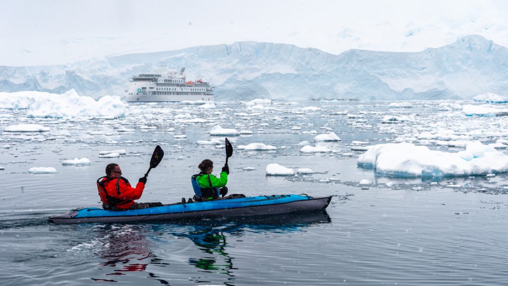 On the cruise portion of the 25-day Trails of Antarctica & Patagonia land-and-sea adventure, guests enjoy offered activities free of charge, including paddling, camping, snowshoeing and snorkeling in addition to the standard included shore excursions and Zodiac cruises. The land portion features various included, guided hikes.