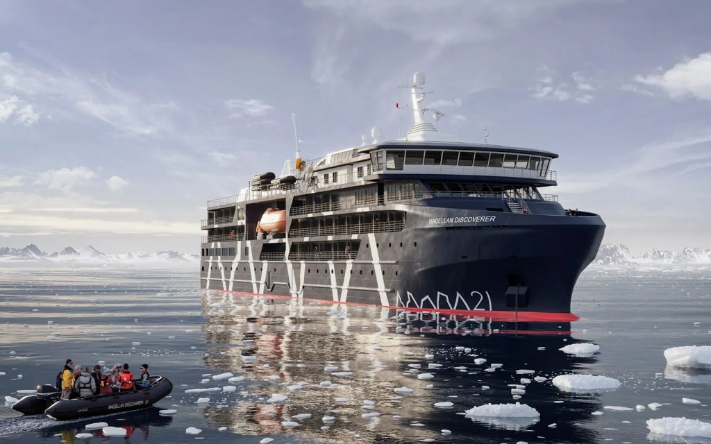 Magellan Discoverer is an elegant and stylish sister ship to the esteemed Magellan Explorer, built for the popular air cruise model. She is equipped with the latest technology for safety and sustainability, and like her sister, Magellan Discoverer flaunts a similar boutique, yacht-like aesthetic. For Antarctic air cruises, Magellan Discoverer will welcome up to 76 guests in 42 cabins across three passenger decks. Magellan Discoverer is under construction at the same ASENAV shipyard in Valdivia, Chile, with anticipated launch for the 2026-2027 Antarctica season.