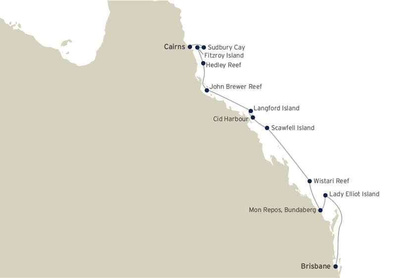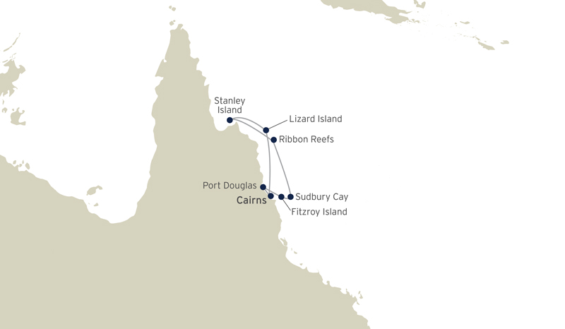 The Coastal Adventures: Great Barrier Reef cruise begins and ends in Cairns, Queensland, Australia (CNS). Plan flights to arrive to Cairns in time for the 12:00pm Noon embarkation and 1:00pm departure on Day 1 of the itinerary. Luggage may be dropped at the ship starting at 10:00am. We highly recommend arriving one day prior to your trip start date in case of any flight delay, cancellation or lost luggage issues. Plan flights to depart Cairns anytime after the 8:00am disembarkation on the final day of the itinerary. If you would like assistance with international flights, please visit our Booking Flights resource page.