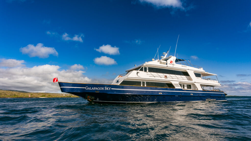 AdventureSmith Explorations’ Galapagos Sky review includes a detailed description of the small ship including deck plans and a photo gallery. Our small ship cruise experts have been aboard nearly every first-class Galapagos cruise ship. Please read our Galapagos Sky dive boat review below then contact our small ship cruise experts to compare the M/V Galapagos Sky with other small cruise ships and yachts offering Galapagos diving and private Galapagos yacht charters.