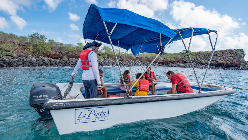 La Pinta is considered the ideal yacht for families traveling together, with many connecting cabins. A special feature La Pinta offers for its young travelers is a program called Young Pirates, where kids can enjoy specially designed menus, earlier dinner hours, recreational material and a Galapagos booklet full of fun and trivia.