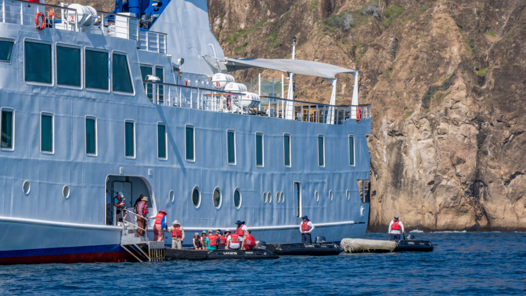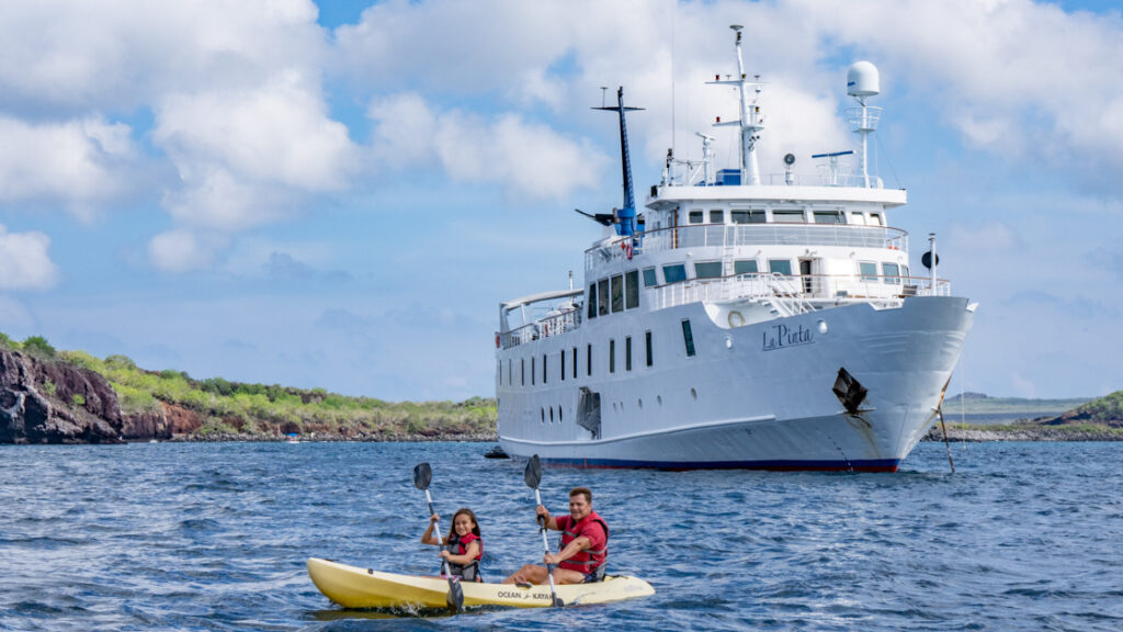 La Pinta offers a sophisticated, upscale travel experience for 48 guests in 24 cabins that combines modern design, spacious rooms and gourmet cuisine, with top adventure. The ship offers a wide variety of aquatic activities including snorkeling, kayaking and rides in a glass-bottom boat. She’s a distillation of the wish lists generated by captains, expedition leaders, hotel managers and guests over many years.