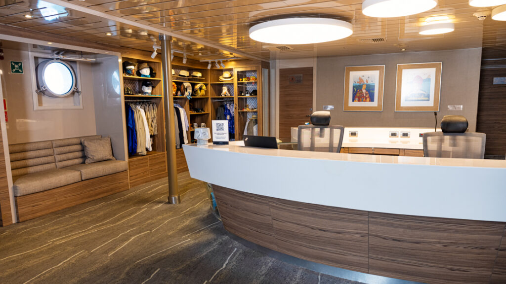 La Pinta boasts some of the largest cabins in Galapagos expedition vessels, with nearly floor-to-ceiling windows, relaxing chairs and private bathrooms. There are 20 Luxury Cabins and 4 Luxury Plus Cabins located on the Cabin Deck. All cabins have beds that can be configured as two twins or joined as matrimonial beds according to guests’ needs (with the exception of cabin 312 which is only available with a matrimonial bed). A total of 4 cabins can be interconnected for friends or families traveling together. Bedding is fine cotton, down duvets and soft pillows. Every cabin has air conditioning, reusable water bottles, luggage storage and a closet, extra blankets, 110-volt type A and B electrical outlets and USB ports, a desk and chair, a view window and an in-room safe deposit box. Bathrooms have biodegradable soap, shampoo and conditioner, plus a hair dryer and plush towels.