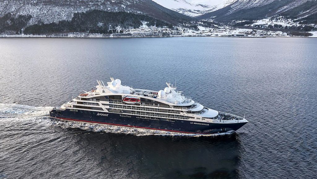 Step aboard the 184-guest Le Bougainville cruise ship for an exceptional voyage with highly trained crew, specialist guides, spotless interiors, exquisite food and experience-driven programming both on the ship and off. This identical twin sister ship to Le Bellot, Le Champlain, Le Dumont D’Urville and Le Jacques Cartier, comes equipped with state-of-the-art technology, sustainability practices, activity gear, and plush staterooms with a private balcony or roomy suites with a terrace. A mix of high-end materials, earthy colors and sweeping sightlines provide guests with a sense of serenity and an appetite for discovery. Follow in the footsteps of French explorer Louis Antoine de Bougainville on this modern expedition ship.