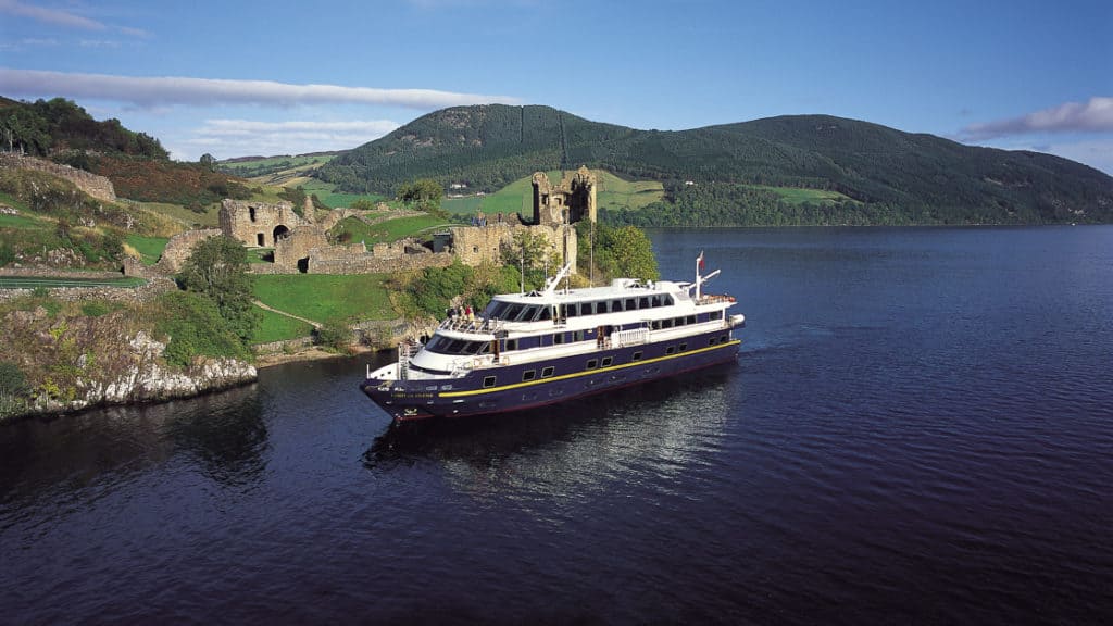 The Lord of the Glens Scotland cruise ship is the perfect balance between a stately country manor and a private yacht, making her the ideal ship to cruise through the Scottish countryside. With polished mahogany features, teak decks, gourmet cuisine and personal service guests can relax comfortably and be swept into the Scottish moorlands in style.