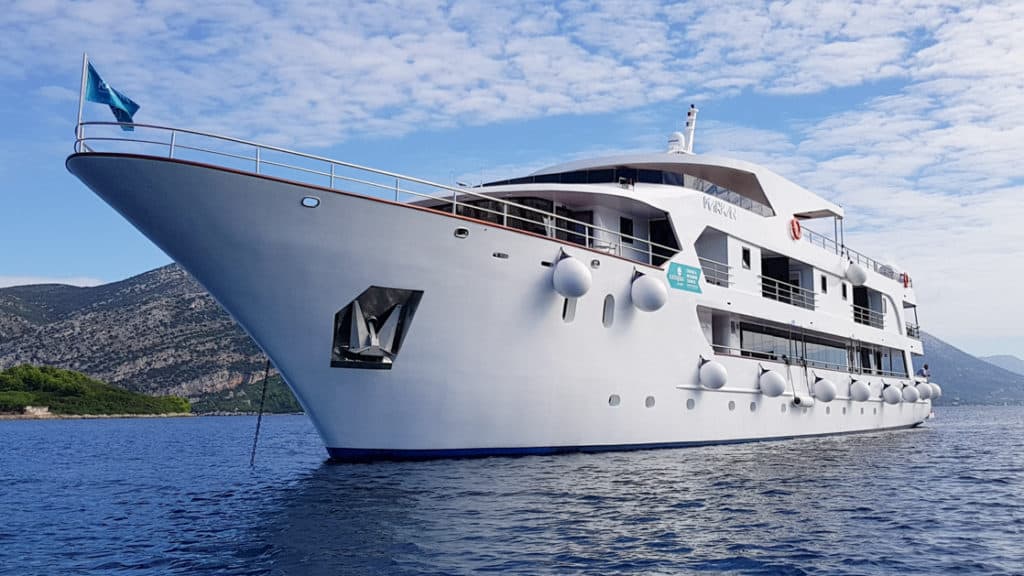 The M/V Markan, sister ship of M/V Infinity, is a 159-foot-long, 29-foot-wide modern and deluxe small ship designed for cruising along Croatia’s Dalmatian Coast. Launched in 2019, this luxury yacht showcases state-of-the-art equipment and amenities. Markan carries a maximum of 38 passengers in 19 guest cabins, creating an intimate atmosphere for all guests. If you are seeking a classy yacht that cruises the Adriatic coast in style at an affordable price, the Markan is a great option.