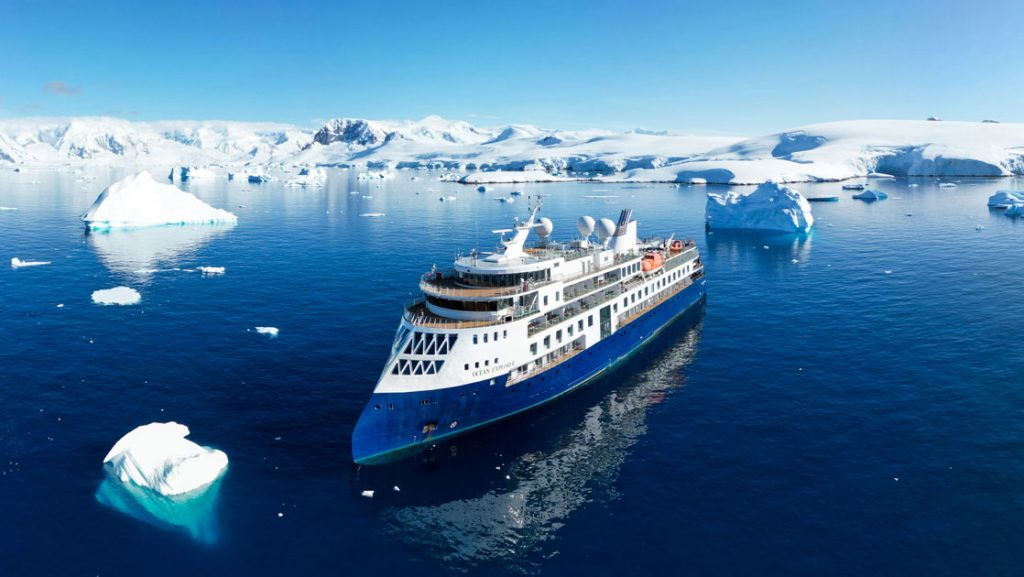 The Ocean Explorer cruise ship offers upscale, inviting spaces and amenities aimed at ultimate guest comfort in demanding polar climates. The ship touts unbelievable viewing areas, including a dramatic two-story forward lounge and the well-stocked library’s floor-to-ceiling glass refuge, with views straight down into the sea. Complimentary basic WiFi is offered throughout the ship, with a premium option available. Finally, a medical clinic offers peace of mind during remote polar travel.