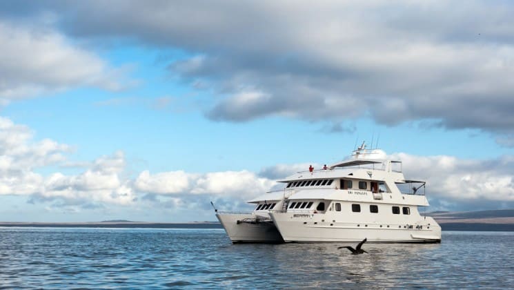 Choose the Seaman Journey for a stable, roomy, sun-filled Galapagos journey. One of the best aspects of this yacht is that she is a catamaran. The multihull design of the Seaman Journey reduces rocking while under motor and at anchor, allowing for smoother sailing. The shallow draft of the catamaran’s hulls enables the ship to get closer to shore, and this design also creates more roomy cabins and spacious areas above deck, making the Seaman Journey an ideal Galapagos yacht. Families will appreciate the interactive, multimedia kids program. Finally, Seaman Journey uniquely offers a citizen science program, with opportunities for guests to document whales and penguins for scientific databases.