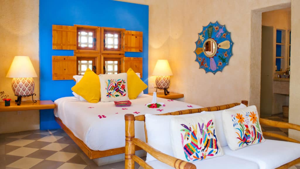 Every guestroom is individually decorated with local artwork that sets the tone of each room’s personality. Sliding glass doors open onto your private shaded terrace, a canopy of bougainvillea and bamboo, where you can relax on your own personal hammock or enjoy in-room spa services like massage and WiFi…