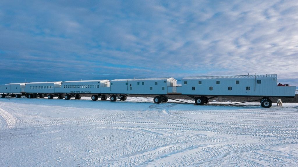 The Tundra Lodge is located on the subarctic tundra outside the small Canadian frontier town of Churchill, Manitoba near the edge of Hudson Bay. This unique, custom-built rolling hotel is strategically positioned in an area of high polar bear density at the beginning of each polar bear season, which runs from October through November.