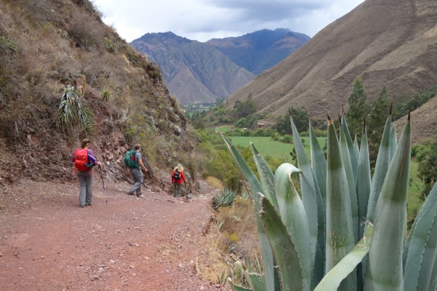 While the popular 26-mile “Inca Trail” is what most people think of when they hear of traveling to Machu Picchu, there are thousands of kilometers of Inca trails throughout the region. On the Lares Adventure you get to sample some of these ancient pathways without the crowds (or the camping). On our first day we hiked such an off-the-beaten-path Inca trail, from the archeological site in Chinchero to the small town of Urquillos. I loved this introduction to the fertile Sacred Valley, which runs roughly 62 miles along the Urubamba River from Pisaq to Machu Picchu, as we were able to witness the terrain change over 5 miles. On our 2,725-foot descent, agave and various cacti hugged the dry hillside trail down to the more lush valley. We didn’t pass a single other hiker. In Urquillos it was a fun change of scenery to go from the solitude of the trail to the bustle of the small village and see children walking home from school, old men carrying feed home on their backs, the occasional tuk-tuk passing on the dirt road, chickens free ranging in yards and dogs on every stoop.